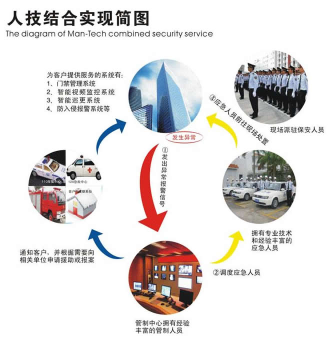 人技結合,就是在現有人力護衛的基礎上,將技術防范手段有機整合,建立立體防控體系,實現24小時全方位的安全護衛。